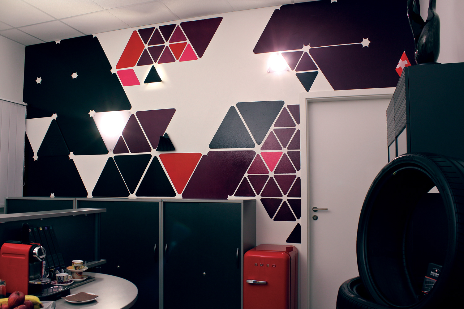 Wandgestaltung mit Bezug auf Swissvax Automobilpflege für das Autopflegecenter WaschPark Cham. http://www.waschpark-cham.de/